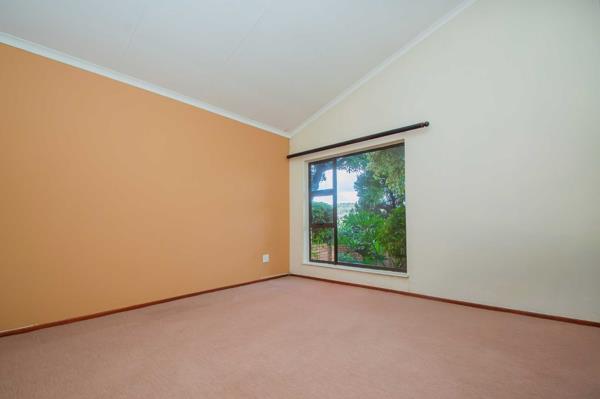 Outside, the beautifully maintained garden provides a sense of peace and privacy, complemented by a built-in braai for effortless entertaining. Enjoy magnificent, scenic views from the expansive covered patio, accessible through a sliding door, overlooking the tranquil valley and lush-green front garden. Additional features include a double garage, a storeroom, and an outside toilet.