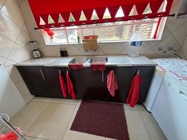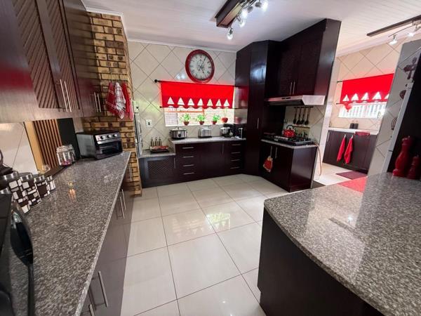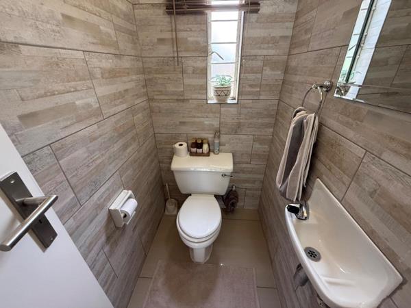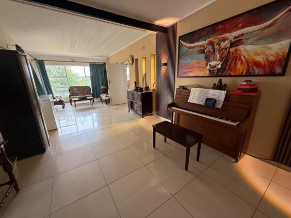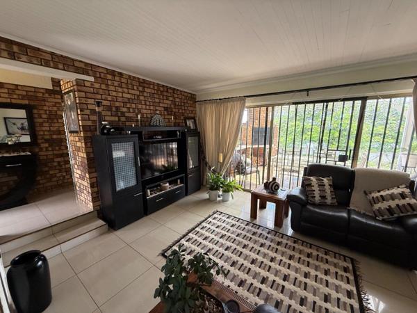 The entrance area leads from a private little garden that exudes peace and tranquility. When you enter your new home you have an extensive lounge and dining room area. This leads to a magnificent kitchen with a scullery. Spacious and designed to cook up a storm. Then you have another massive lounge/Tv area leading to a study with enough space to double as an office from home. The other side is to the closed stoep leading to the perfect garden and pool. The pool is kept green with a bore hole.