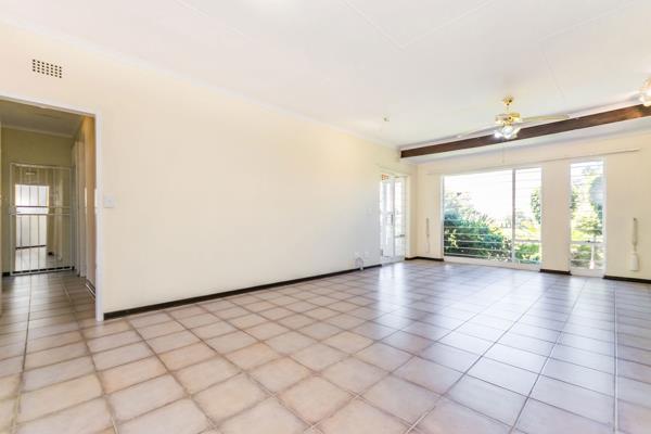 This lovely 3-bedroom, 2-bathroom townhouse offers a perfect blend of comfort, space, and security in a beautifully maintained complex.. The kitchen is fitted with built in cupboards, double basin and connections for a washing machine it also features convenient access to a private courtyard. The open-plan dining and TV room provides a warm and welcoming space for family living, while the separate living room complete with built-in cupboardsboasts a stunning view over the golf course and opens onto a well-established private garden, perfect for relaxation or entertaining guests.