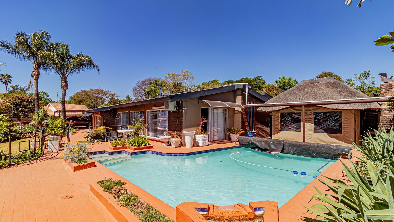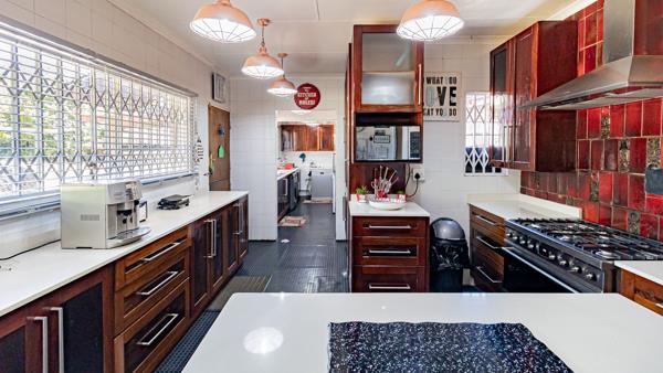 Perfect for entertainers and families alike, the home boasts a covered patio with a built-in braai inside a charming lapa, as well as a gym room, storeroom, and domestic quarters. The chefs kitchen is a true highlight, complete with a pantry, laundry, and scullery, flowing effortlessly into the open-plan family room with sliding doors leading to an enclosed garden. For those who love to entertain, the well-equipped pub area offers a welcoming space to gather and enjoy special occasions, while a borehole and full irrigation system keep the lush surroundings thriving year-round.
