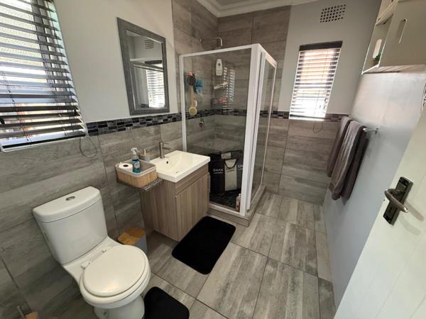 The main house offers 3 stunning bedrooms with Built in cupboards and lots of space in every bedroom. There are 2 bathrooms. The one bathroom is the main en suite. There is a stunning lounge area with a built in braai. The size of two rooms in one!. The kitchen is spacious and offer more than enough cupboard space, with a scullery area!!