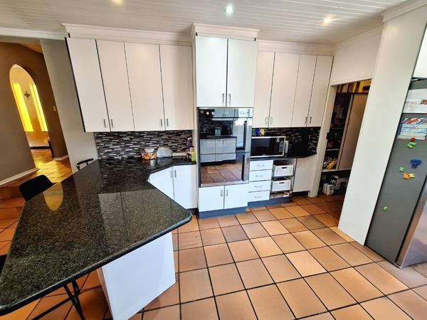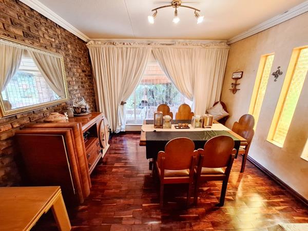 A separate one-bedroom flatlet adds even more flexibility, complete with its own open-plan kitchen, lounge, neat bathroom, and spacious bedroom. The large lapa with its own toilet and basin invites endless entertainment possibilities. Additional features include a separate laundry, domestic quarters with shower and toilet, a double garage, ample carports, and secure yard parking. With solar power to keep the lights on, this property is as practical as it is inviting.