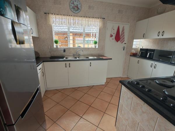 Step outside to a beautifully landscaped garden, enhanced by palm trees that create a tranquil, holiday-like atmosphere. The thatched lapa is ideal for year-round entertaining, while secure parking is provided by a double garage and covered carports.