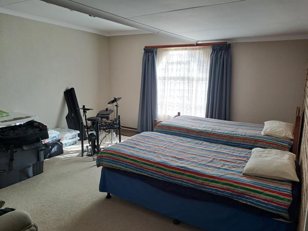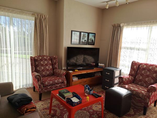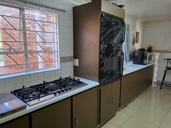 Step into a bright, welcoming lounge filled with natural light. A private study caters to all your work-from-home needs, while the elegant dining room is perfect for family meals or entertaining. The well-appointed kitchen boasts generous cupboard space, a scullery, gas hob, and double eye-level oven. A cozy TV room opens through sliding doors to a lush, manicured garden. Two downstairs bedrooms are serviced by a stylish full bathroom, and a guest toilet adds convenience for visitors.