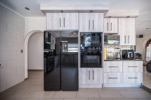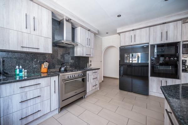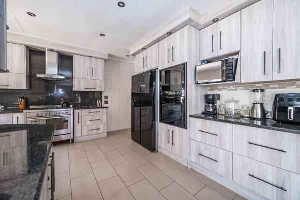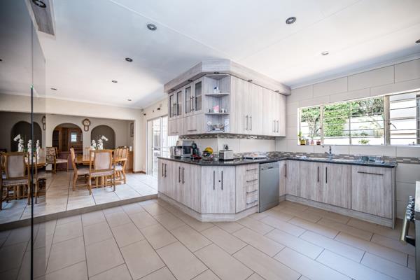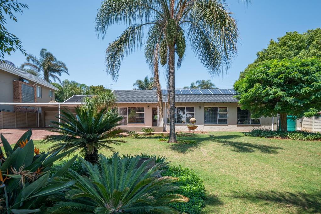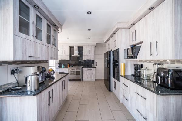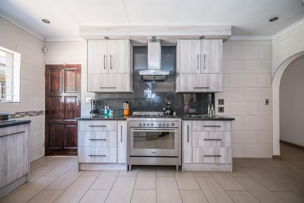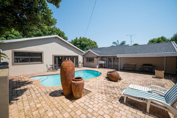 This is a stunning modern 4 bedroom2bathroom family home with 170 m2 flat and sparkling pool. This family home offers 4 large sunny bedrooms with build-in-cupboards, The main bedroom comes with a full bathroom with bath and shower. There is a modern family bathroom. The kitchen is modern and well fitted and offers gas stove and double fitted ovens and granite tops and offers lots of countertops. The kitchen can fit double door fridge. The kitchen leads onto tiled dining room. There is a formal lounge and family room with large windows and sliding door to patio. There is a 170 sqm flat with 1 bedroom previously a 3 bedroom, bathroom, kitchen, laundry and dining room with large living are with stacking doors. Full Domestic room with bathroom. There is a sparkling pool, Jacuzzi and Boma. Storeroom. There are a tandem garage and 4 carports. The garden is well maintained and there is a borehole and pop-up sprinkler system. Yoyo tank with water purifier system. The 5 KVA Invertor with Lithium batteries and 8 Solar panels. This property offers a lot of space and extra''s. This is a must view property. Phone today to view!!!!!