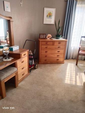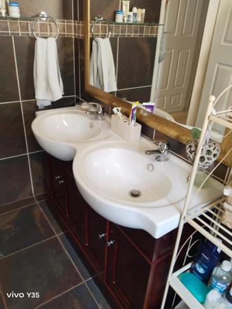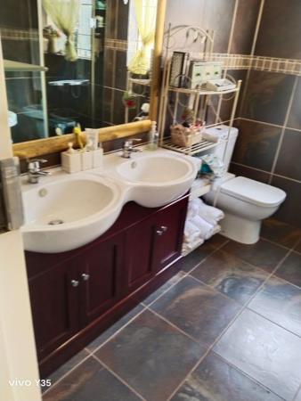 This four bedroom family home main on ensuit with a sliding door leading to the pool and entertainment area situated in popular street of Rant en Dal is offering guest bedroom with built cupboards, living area fitted with blinds and its own bathroom, formal lounge with gas heater, two air conditioners, dining room, fitted bar, modern kitchen with granite tops, extractor fan plus eye level oven separate laundry plus scullery and two full modern bathrooms with showers