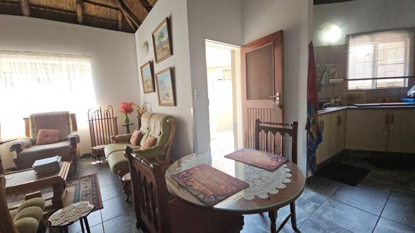 Soek jy n aftreehuis wat warmte, geselligheid en rustigheid kombineer Hierdie 2-slaapkamer grasdakhuis in Die Oog Aftreeoord is die antwoord.