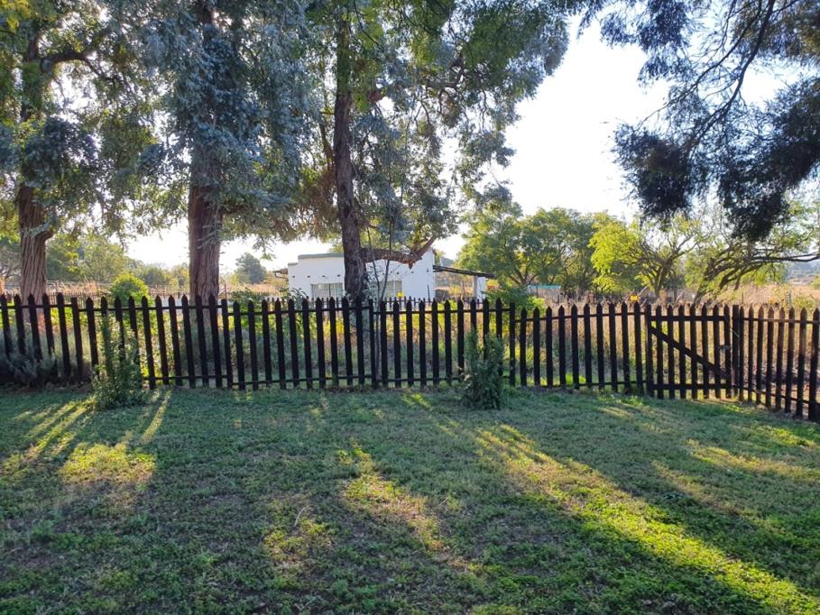Rose Cottage, one of the dwellings on the farm, is a 3-bedroom cottage with built-in closets, a garage with a utility room, 2 1/2 bathrooms, a linen closet, and a small tiled patio. The cottage offers a combined open area for the lounge and dining room, a fitted kitchen, and security gates on doors and secured windows. It also includes an alarm system activated by an electric fence and beams. This cottage generates an income of R 8500.00.