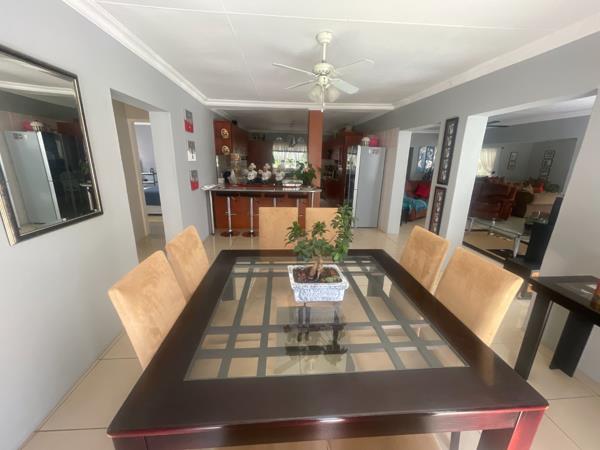 The property is designed for entertainment and convenience, featuring two swimming pools and three entertainment areas with built-in braais. It is serviced by municipal electricity and water and offers ample parking with three double garages and a double carport. This is an ideal property for extended family living or as an income-generating investment.