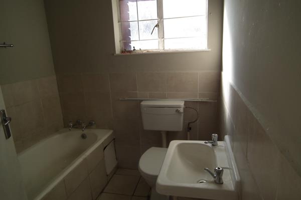 Accommodation comprises two bedrooms, each offering a comfortable space with tiled flooring and neutral walls. Both features built-in cupboards, providing convenient storage. The single bathroom is complete with a bathtub, toilet, and sink, featuring neutral tiles and natural light from a window. The property offers a blank canvas for personalization and modern updates.
