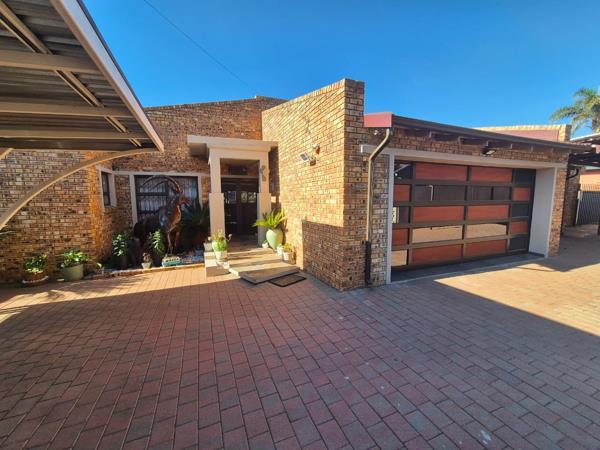 Discover an exceptional residential offering in the tranquil suburban enclave of Culemborg Park, Randfontein. This distinguished property, spanning an impressive 342 sqm on a generous 990 sqm erf, presents a lifestyle of comfort and sophisticated living. The striking brick exterior and meticulously paved driveway immediately convey a sense of enduring quality and ample space, complemented by a modern garage and additional covered parking, ensuring convenience for residents and guests alike.