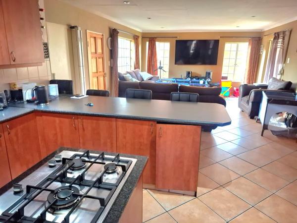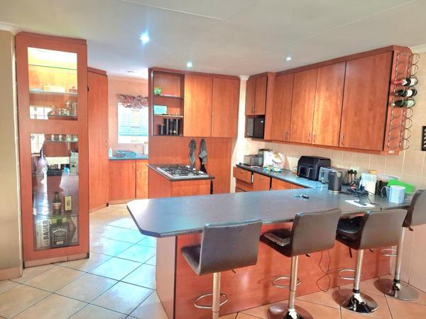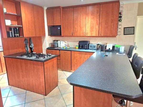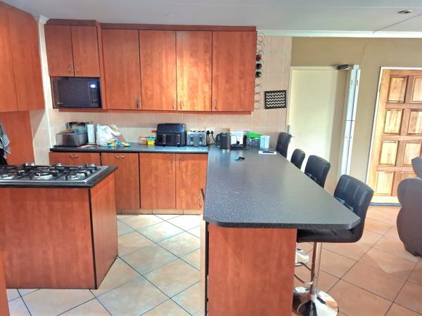 Lets enter into a well sized reception area neatly tiled that opens up onto a patio with a build in braai for those entertainment days. A modern kitchen with breakfast nook, ample packing space for appliances. 5 Plate gas hob convenient when preparing your meals. Separate scullery with double wash basin and washing machine fittings. 3 Well sized bedrooms with tiled floors and build in cupboards. Main bedroom with walk in cupboard. 2 Modern bathrooms where one is main on suite.