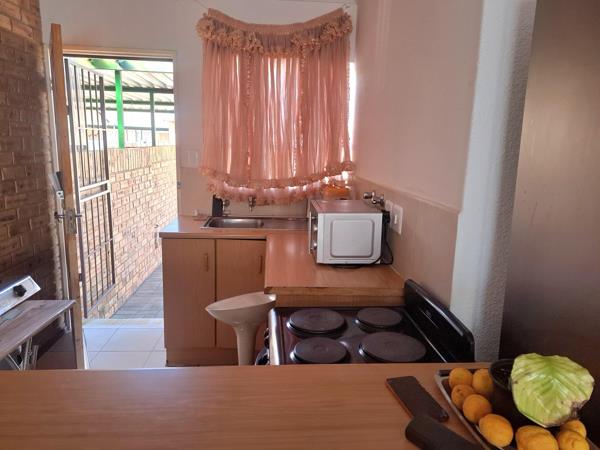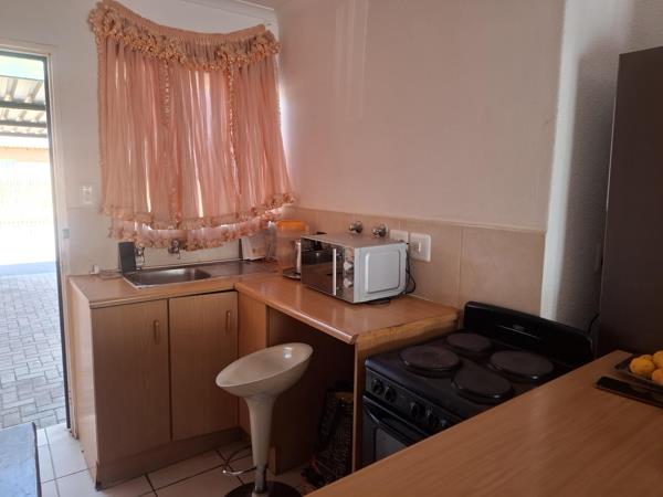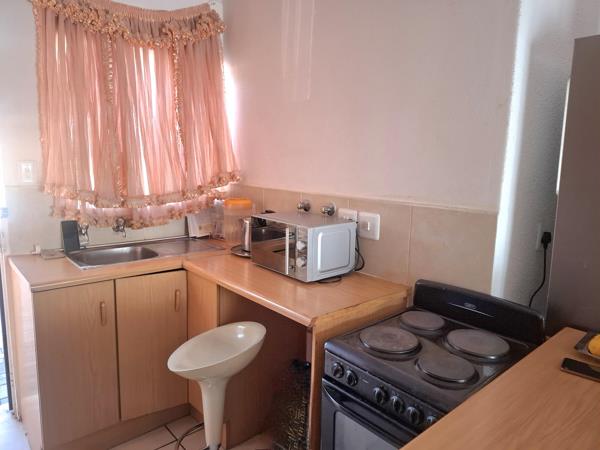 Offers open plan living area with a fitted kitchen and a stove. 2 Bedrooms with build in cupboards. 1 Well sized bathroom with bath, basin and toilet.