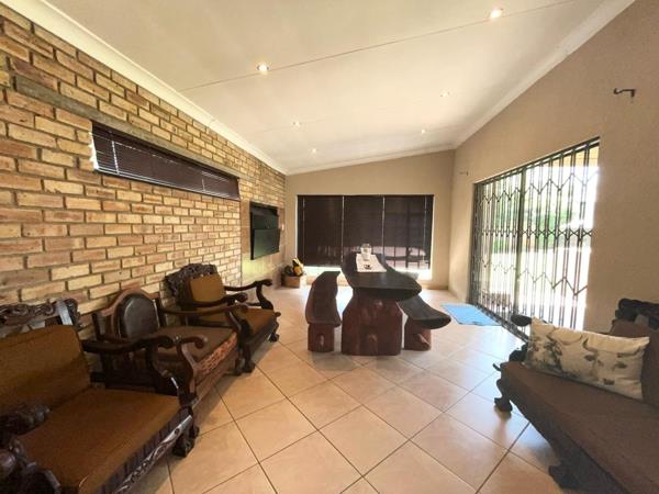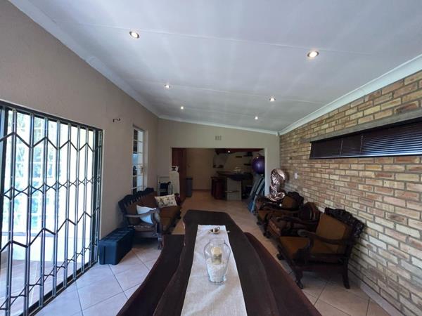 This neat as a pin property features an open plan lounge and dinging room with curtain rails and tiled flooring. Spacious kitchen with ample built-in cupboards, eyelevel oven, hob, extractor fan, Centre island, separate scullery, curtain rails and tiled flooring. Three well-sized bedrooms with built-in cupboards and curtain rails. Two and tiled flooring and main bedroom with walk-in closet and modern en-suite bathroom with huge corner bath, basin, toilet and carpet flooring. Second bathroom with bath, hand shower, basin, toilet and tiled flooring. Huge entertainment area with built-in braai and bar, blinds and tiled flooring. Patio. Pre-paid electricity.