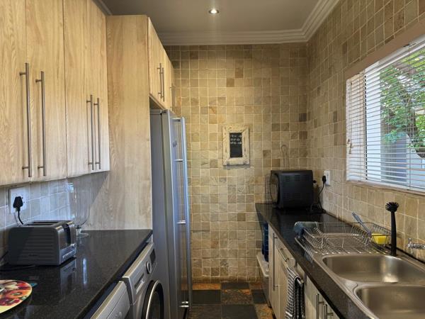 Step into style and space with this impressive, move-in-ready three-bedroom home, perfectly designed for modern family living and working from home. Recently renovated with high-end finishes, this property offers a seamless blend of functionality, luxury, and opportunity. Inside, the home features a brand-new kitchen with a scullery that flows effortlessly into the open-plan dining area and private study, creating an inviting space for both productivity and entertaining. Each bedroom is fitted with laminate flooring, sleek blinds, and ample built-in cupboards, while stacker doors open directly onto the garden, creating a beautiful indoor-outdoor connection.