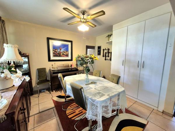 This residence offers two comfortable bedrooms, each fitted with tiled flooring and ceiling fans, ensuring a pleasant environment. Ample storage solutions are integrated, including built-in wardrobes in the bedrooms and additional storage units within the dining area. The property includes 1.5 bathrooms, designed for everyday convenience.