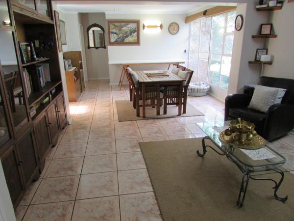 Immaculate Family home just arrived on the market!! When entering this home you are immediately struck by the space and tasteful quality of the fittings and tiled floors. Consist of 3 Huge reception areas, the family room with beautiful chandelier light fittings leading to a dining area with modern fittings, where the TV Room is spacious with a fire place for those winter days. Partially under tile heating. All windows fitted with blinds. A Beautiful kitchen with electric glass hob, gas stove, eye level oven, also soft touch cupboards with pantry and double wash up basin. At the kitchen there is another spacious area that can be used as entertainment area leading to a enclosed patio that opens up onto the garden area with a sparkling swimming pool, fish pond and irrigation system.