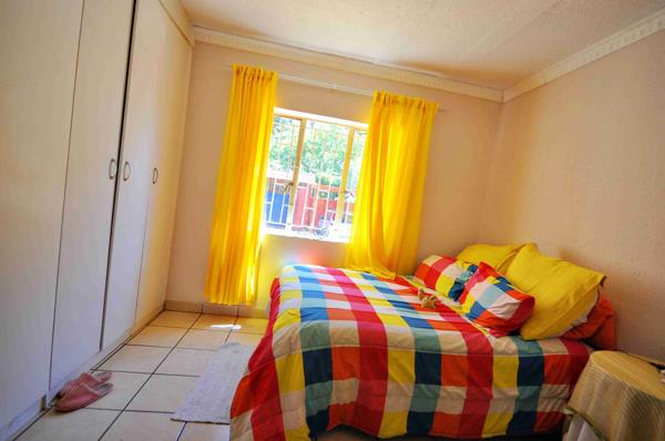 Bedrooms: Two sunny, well-sized bedrooms with tiled flooring and built-in cupboards for ample storage.