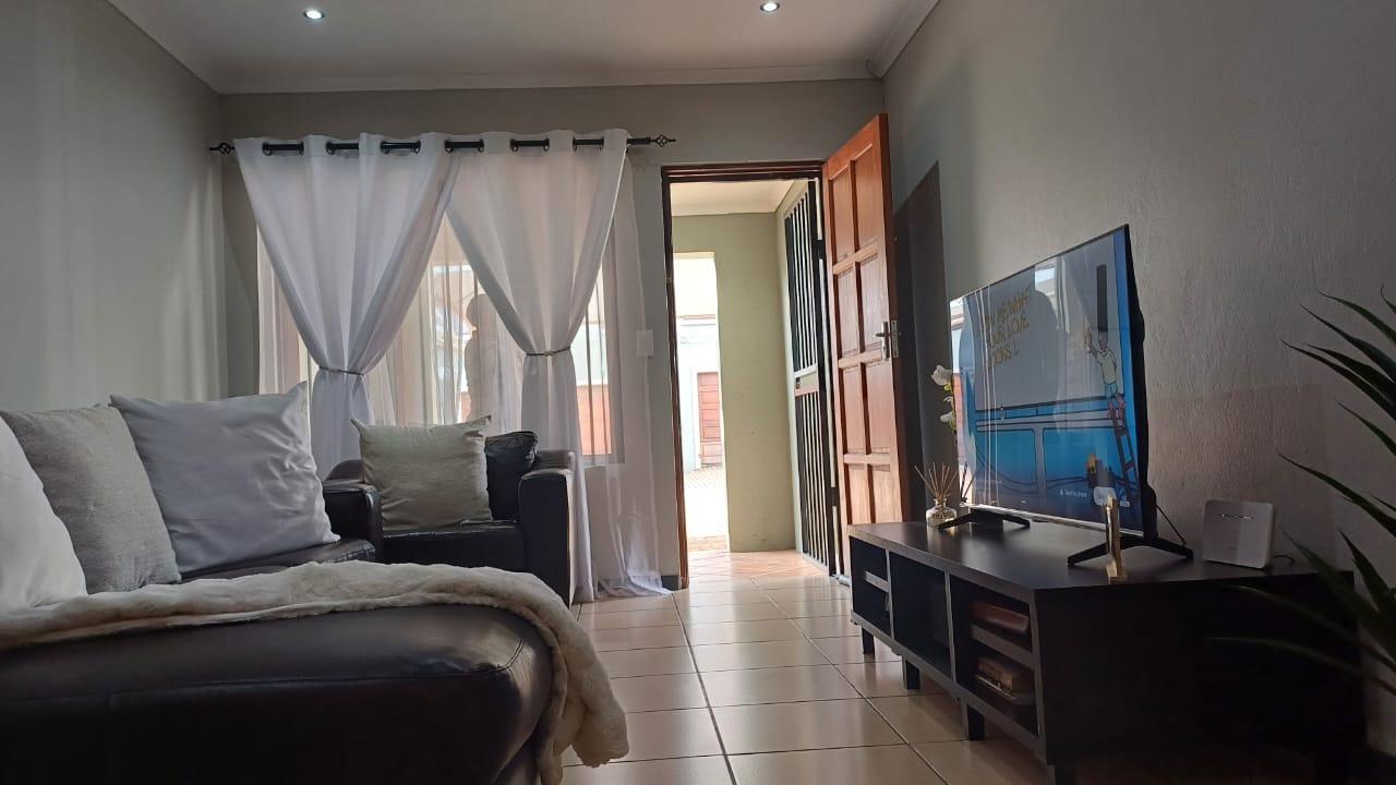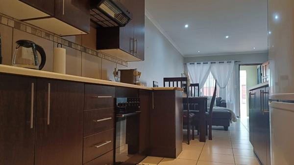 Enhanced security is provided with burglar bars and safety gates, offering peace of mind. Before entering the unit, you''ll find a charming undercover stoep area, providing a perfect outdoor space for relaxation. Inside, the spacious, modern open-plan family room is bathed in abundant natural light, making it an ideal setting for family gatherings and entertainment.