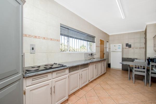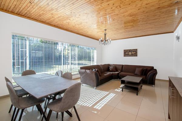 Outdoors, a large and beautifully maintained garden provides the perfect backdrop for children to play or pets to roam. The sparkling pool and covered patio area with a built-in braai make entertaining a breeze, no matter the season.