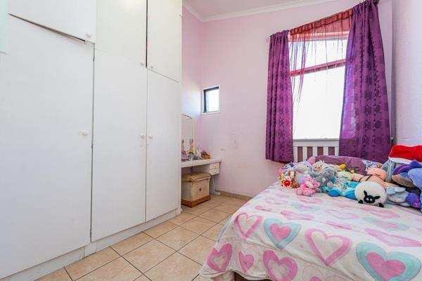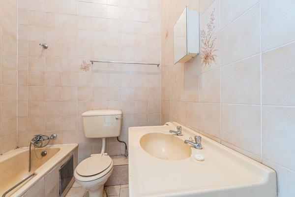 Upstairs you are welcomed with a guest toilet. The main bedroom offers ample cupboard space and a full on-suite bathroom with bath, basin, toilet and shower. Large linen cupboard for extra storage. The second bathroom which is in between the 2 bedrooms, both bedrooms have ample space with built in cupboards with the one bedroom offering the space to fit a queen bed with ease and the second smaller bedroom offering the space to fit a 34 bed with ease.