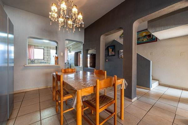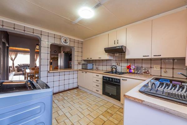On arrival of property you will be welcomed with an open spacious yard with a single carport and single lock up garage that leads into the house with additional parking space outside. The kitchen is positioned on the right of the property offering ample cupboard space, hob and extractor with the fittings needed for a washing machine outlet, the door leading out of the kitchen leads to an open plan courtyard which has potential to be a closed room feature with necessary fittings for a washing machine. The dining room has ample space and welcomes you with a chandelier and is able to take a 6-seater dining table and double door fridge with ample space for storage cabinets.