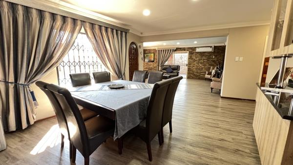 Outside, enjoy a sparkling pool with an enclosed lapa and braai area, a meticulously kept garden, double automated garage with direct house access, an additional double garage, and ample parking including carports for a caravan or boat.