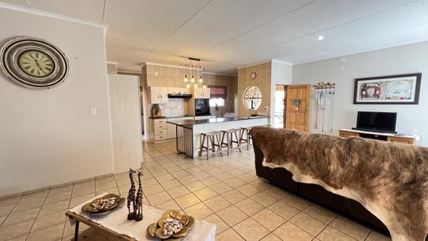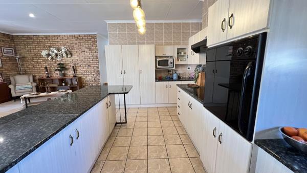Additional highlights include double garagesone with a convenient drive-through to the backyardan outside toilet, and comprehensive security with a fully fenced property, electric gate, electric fencing, burglar bars, security gates, an alarm system, and outside beams.