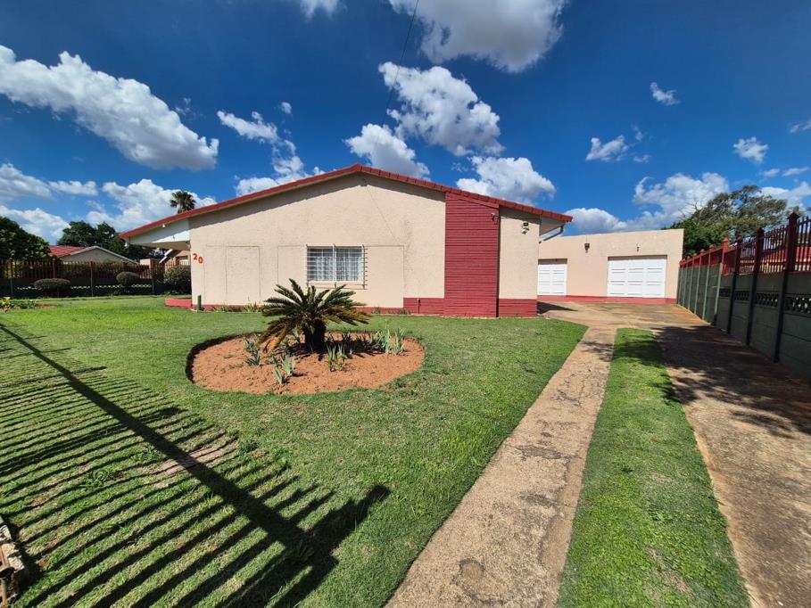 Nestled in the suburban area of Greenhills, Randfontein, this single-story residence presents a neat kerb appeal with its red tiled roof and light-colored exterior walls, complemented by red accents. A paved driveway leads to a double garage, and the property features a well-maintained front lawn and garden beds. Security bars on windows and doors, along with a gated entrance, provide peace of mind.
