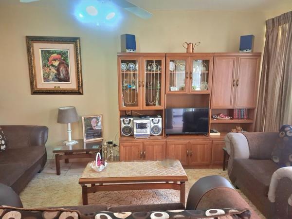 Consist of 2 reception areas beautifully tiled with neat finishes. The family room opens up onto an enclosed patio with direct access to the communal garden, and communal braai area. A lovely dining area neatly tiled with ceiling fan. Fitted kitchen, tiled and spacious, with granite tops, stove, place for a refrigerator and washing machine. Both living areas are spacious with natural light from windows. 2 Well size bedrooms with ceiling fans and tiled floors. 1 Full bathroom with bath, shower and basin. Separate toilet.