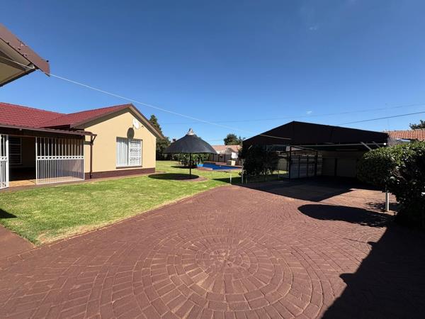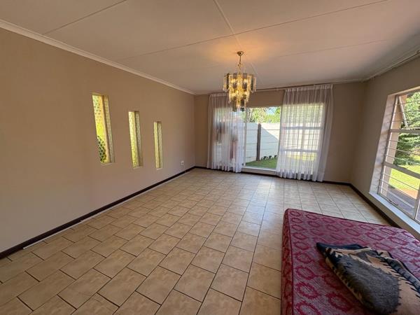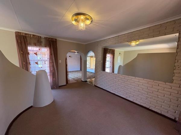 This freshly painted house is perfectly situated close to most amenities, offering a combination of comfort and convenience. Inside, the home features a cozy lounge with carpets, curtain rails, Fan and Tv port, a dining room with carpets and curtain rails, and a TV room with carpets and Tv port. The kitchen is well-equipped with Built in cupboards, Eye level oven, Gas hob and includes a separate laundry room, ensuring a practical and organized living space. Three bedrooms with built-in cupboards and tiled floors, Two bathrooms with tiled floors, one bathroom is full with a bath, shower, basin and toilet and the second bathroom features a bath, toilet and basin.