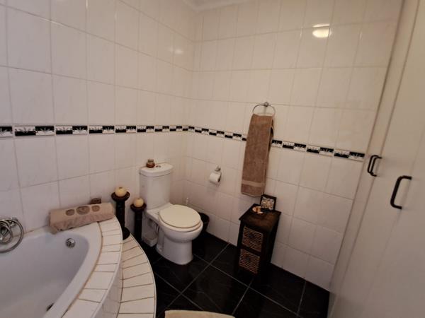 This spacious home features four bedrooms, three of which are situated upstairs, all fitted with built-in cupboards. Three of the four bedrooms enjoy the added luxury and privacy of their own en-suite bathrooms.