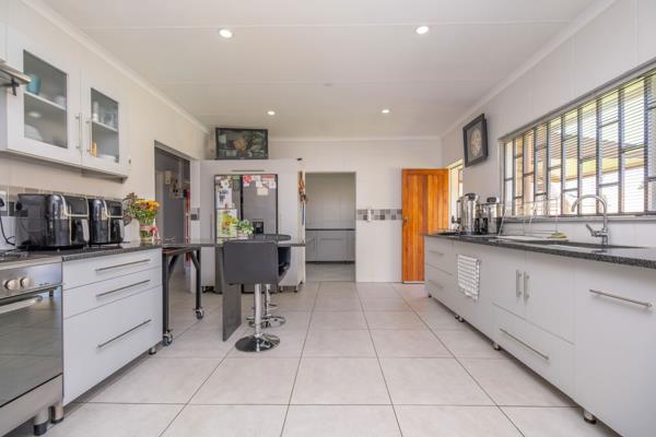 The home boasts two well-sized living areas, creating a warm and inviting atmosphere for both relaxation and entertaining. The large kitchen is well-equipped and complemented by a separate scullery and laundry room, ensuring added functionality.