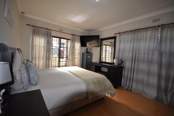 The main house boasts a spacious open-plan DINING ROOM and LOUNGE with laminated floors, ideal for hosting family meals and gatherings.