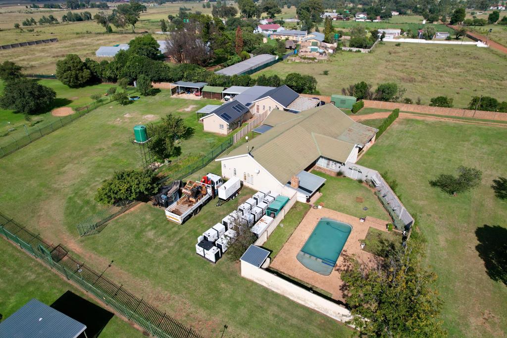 The main residence offers five generously sized bedrooms, three modern bathrooms, and open-plan living spaces complete with a built-in braai. Additional features include a swimming pool, gas stove and geyser, pre-paid electricity, and three garages.