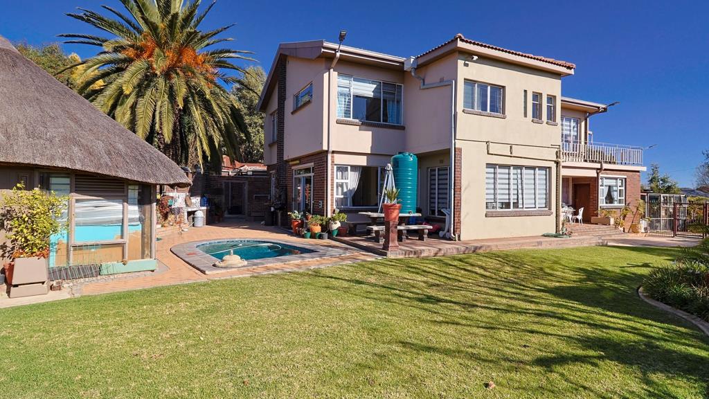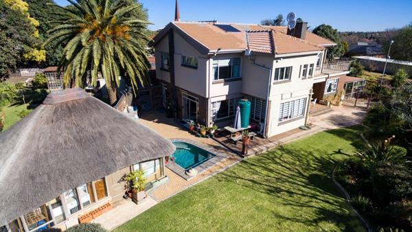 This home boasts five bedrooms and three bathrooms, including an en-suite for added privacy, plus a convenient guest toilet. Need a quiet spot to work or study There''s a dedicated study too. Step outside to a fantastic garden with a private swimming pool and a charming thatched lapa, perfect for entertaining friends and family. Enjoy the fresh air from your balcony or the paved patio.