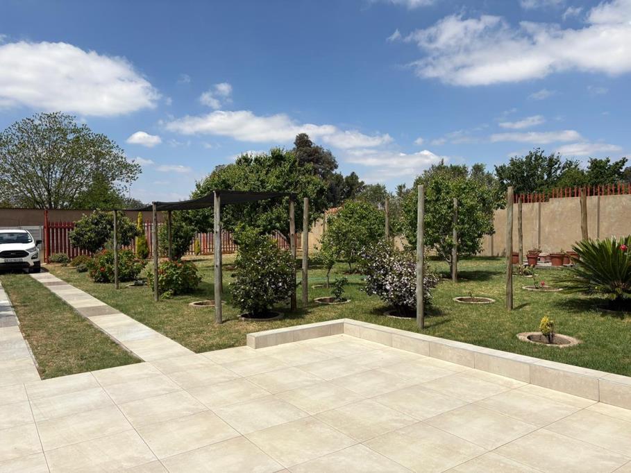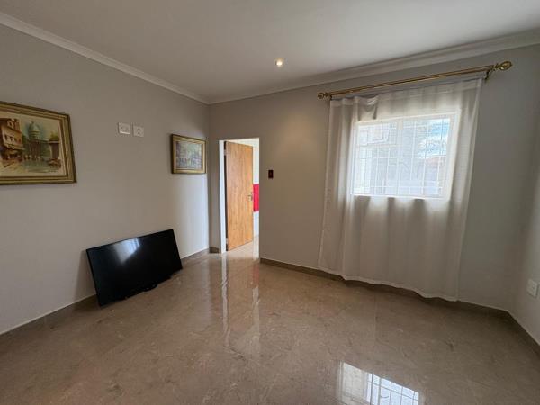 The main house spans 250 square meters and exudes modern elegance with porcelain tiled floors, a spacious double garage, and a storage room that can easily be converted into a guest bathroom. A bright, glass-covered patio provides a peaceful area to relax, while the open-plan lounge and dining area flow effortlessly into a sleek, modern kitchen. The home features three well-sized bedrooms, three ultra-modern bathrooms, and a separate study or office, offering both luxury and practicality for family living or remote work.