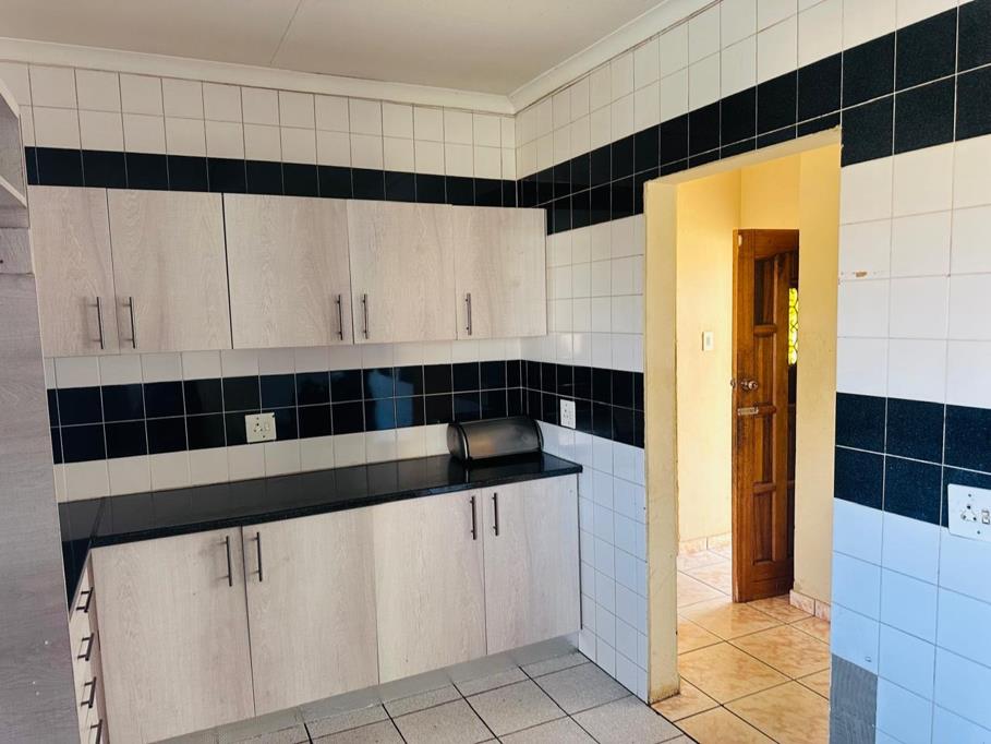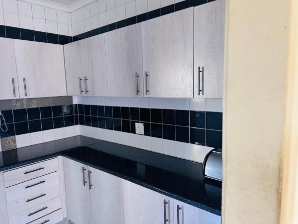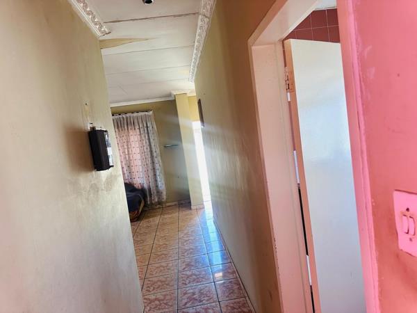 This is a perfect place to call home with little touch ups (some ceiling parts) to be done you can turn it into your perfect beautiful home. This 3 bedroom house offers well sized bedrooms all with built in cupboards. It offers 2 bathrooms 1 with a shower and toilet and the other with a bath, toilet and basin. Passage leads to a spacious lounge area with a dining area. Kitchen has beautiful built-in cupboards with space for a double door fridge, it has double sink, machine connection, offers granite tops. The entire house is well tiled. The yard is very spacious and secure with double garage for car parking also offers outside rooms with a lot of potential also offers a toilet outside. Near shell garage, its about a 5minute drive to Spar as well as Avante Primary school. Waste no further time and just call to arrange viewing.