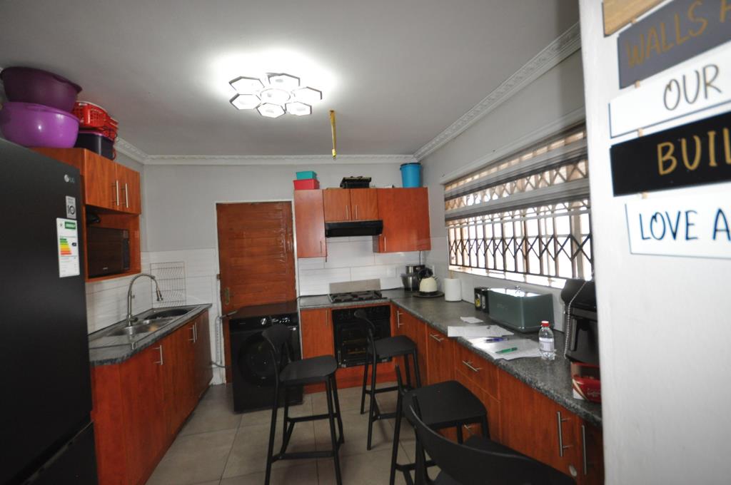 The home welcomes you into a spacious family room with tiled floorsperfect for relaxing or entertaining guests. The functional kitchen is fitted with built-in cupboards and offers ample space for everyday cooking.