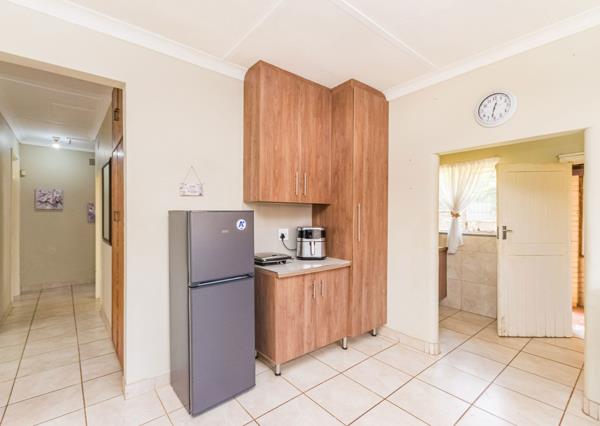 Parking is well catered for with a single lock-up garage, a secure carport for two vehicles, and additional secure parking in front of the carports. Safety features include an alarm system, burglar bars, and solar lights, providing peace of mind.
