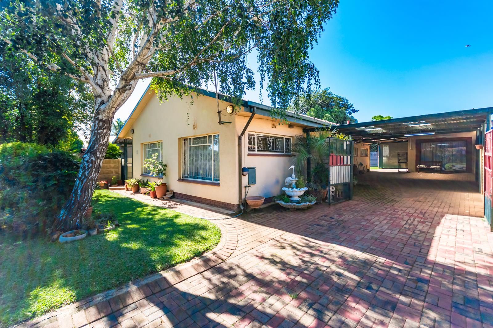 Security is top-notch, with an alarm system, beams, burglar bars, and security doors ensuring peace of mind. A beautifully maintained garden and a storage space complete this property.