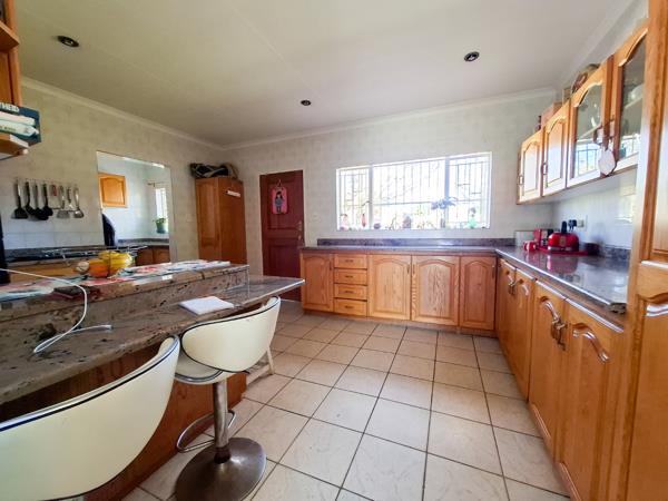 The well-equipped kitchen offers ample counter and cupboard space and flows seamlessly into a separate scullery/laundry area, ensuring practicality and ease in daily living.