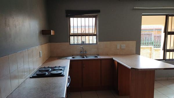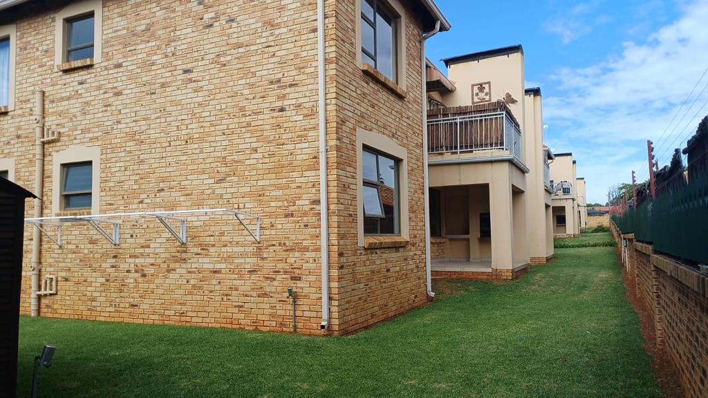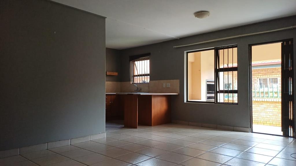 This inviting 2-bedroom townhouse, situated within a well-maintained complex in Randpoort, Randfontein, offers comfortable suburban living. The exterior features a neat mix of brick and painted finishes, complemented by a manicured lawn and private outdoor spaces, including a covered patio. The complex benefits from electric fencing, contributing to a secure environment for residents.