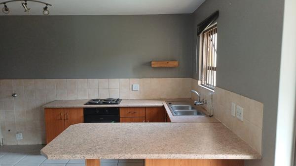 The townhouse features two comfortable bedrooms and a well-appointed bathroom. Security is a priority, with burglar bars on windows and a security gate on the main entrance providing peace of mind. Residents can enjoy the communal amenities, including a refreshing swimming pool and a communal braai area, ideal for relaxation and social gatherings. The property also includes one dedicated parking space and a private garden area.