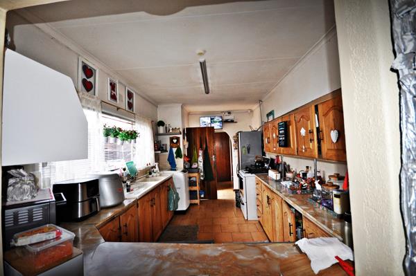 The home welcomes you with an open-plan lounge with tiled flooring, creating a warm and inviting living area that flows effortlessly into the open-plan dining room. The country-style wooden kitchen is well-sized and practical, offering ample cupboard space and a charming, homely feel.