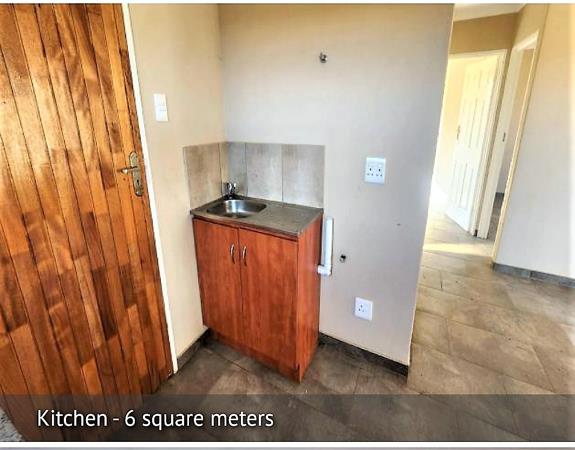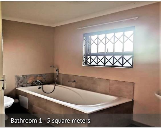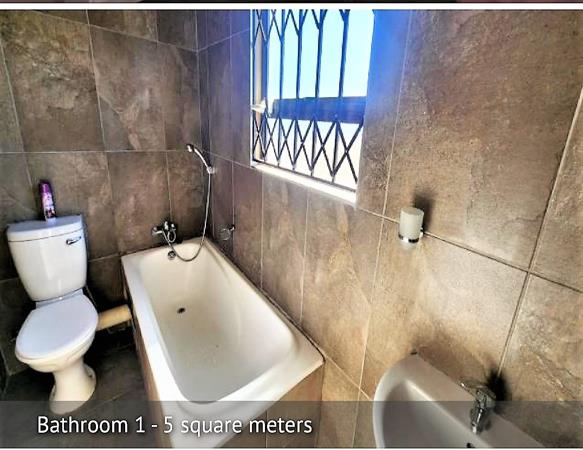 The single bathroom is well-appointed with a full bath, fully tiled walls, and benefits from natural light and ventilation via a window fitted with security bars. The overall design prioritizes security and practicality, making it a sensible choice for a secure lifestyle. With its modern finishes and essential amenities, this home is ready for immediate occupation.