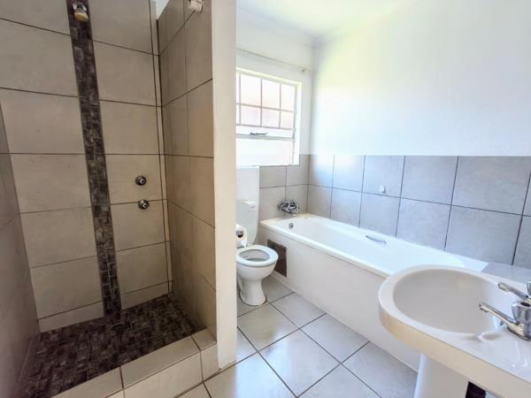 The open-plan living area is perfect for relaxing or entertaining, while the neat kitchen makes everyday living a pleasure. Step outside to your private garden an ideal spot for morning coffee, weekend braais, and a safe playground for your pets. The complex offers a communal pool.