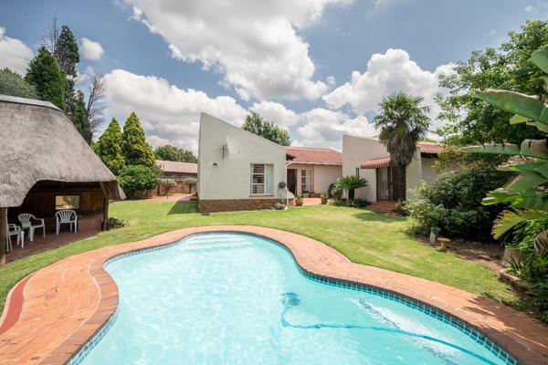 This family home with Lapa and pool is for sale. This home offers 3 bedrooms with build-in-cupboards. The main bedroom with on- suite bathroom the two other bedrooms share a full family bathroom with bath and shower. There is a study adjacent to main bedroom. The kitchen is open plan, with breakfast nook. There is a dining room, lounge and family room. Double garage and carports. There is domestic room with bathroom. The Lapa comes with a build-in-braai. There is a sparkling pool set in well maintain garden. There is a storeroom. This is a must-see property, phone today to view!!!