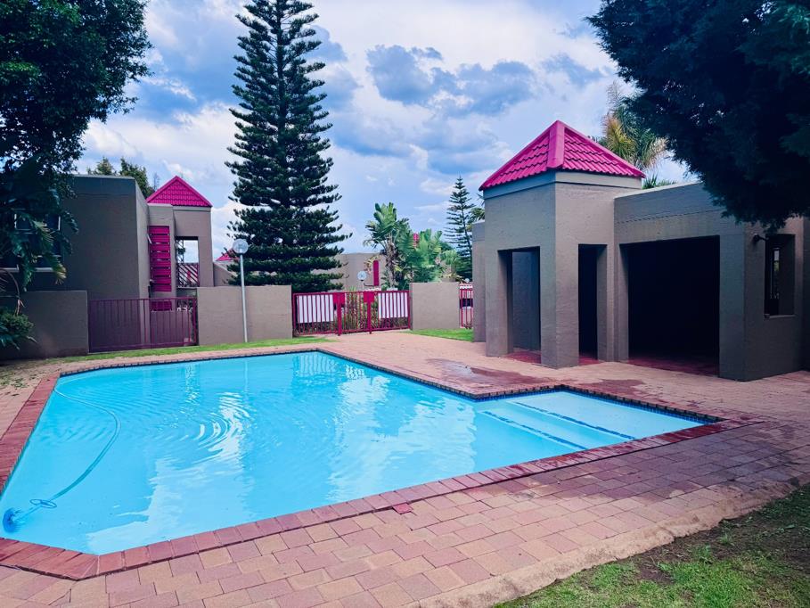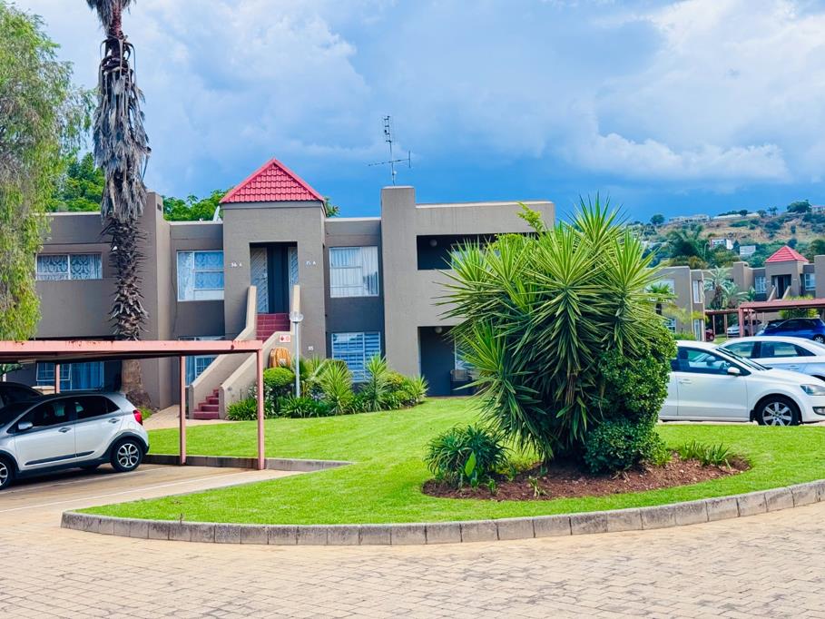 This modern 2-bedroom, 1-full bathroom apartment offers a comfortable and secure lifestyle within a well-maintained complex in Allens Nek Roodepoort, a stone throw away from Clearwater Mall and Macro. The property boasts contemporary architectural design with clean lines and a welcoming exterior, set amidst lush, manicured lawns and mature trees, creating an inviting first impression.