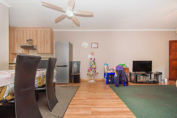 Welcome to this beautifully presented 3-bedroom home offering comfort, style, and exceptional convenience. All three bedrooms are fitted with built-in cupboards and feature elegant laminated flooring, creating warm and inviting spaces throughout. The main bedroom includes a modern en-suite bathroom with a shower, basin, and toilet, while the second bathroom offers a bath, basin, and toiletperfectly catering to both family living and guest convenience. The lounge flows seamlessly into a practical kitchen that provides space for two under-counter appliances and a single fridge, making everyday living effortless.